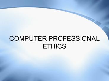 COMPUTER PROFESSIONAL ETHICS PowerPoint PPT Presentation