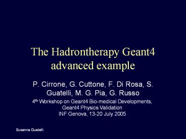 - P. Cirrone, G. Cuttone, F. Di Rosa, S. Guatelli,