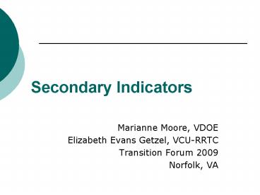 <Notice: Removed> Secondary Indicators PowerPoint PPT Presentation
