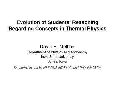 1Evolution of Students Reasoning Regarding