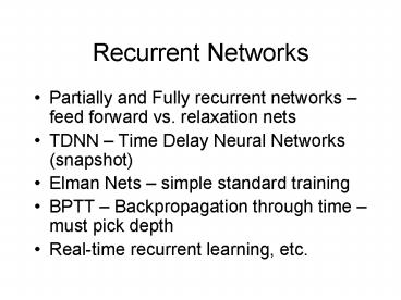 Recurrent Networks PowerPoint PPT Presentation