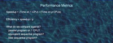 • Speedup (Time on 1 CPU) / (Time on p CPUs)
