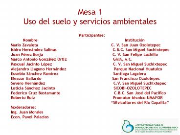Mesa 1 Uso del suelo y servicios ambientales PowerPoint PPT Presentation