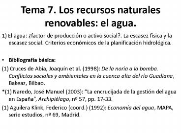 Title: Tema 7' Los recursos naturales renovables: el agua'