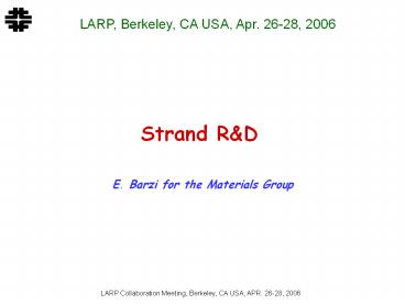 • E. Barzi for the Materials Group