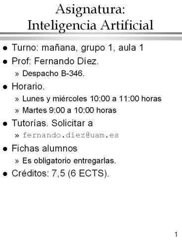 Asignatura: Inteligencia Artificial PowerPoint PPT Presentation