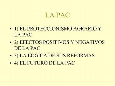 - 2) EFECTOS POSITIVOS Y NEGATIVOS DE LA PAC