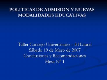 POLITICAS DE ADMISION Y NUEVAS MODALIDADES