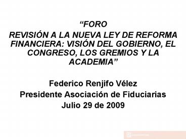 - REVISIÓN A LA NUEVA LEY DE REFORMA FINANCIERA