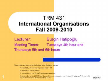 Title: TRM 431 International Organisations Fall 20092010
