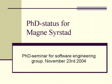 PhD-status for Magne Syrstad PowerPoint PPT Presentation