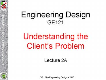 Title: Engineering Design GE121 Understanding the Clients Problem