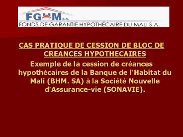 CAS PRATIQUE DE CESSION DE BLOC DE CREANCES HYPOTHECAIRES PowerPoint PPT Presentation