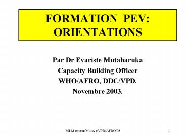 aux opérations PEV. - La formation comme pierre angulaire pour