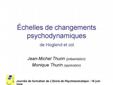 chelles de changements psychodynamiques de Hoglend et col' PowerPoint PPT Presentation