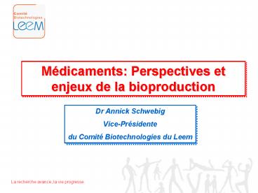 Title: Mdicaments: Perspectives et enjeux de la bioproduction