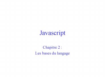 Chapitre 2 Les bases du langage