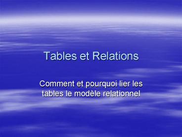 Tables et Relations PowerPoint PPT Presentation