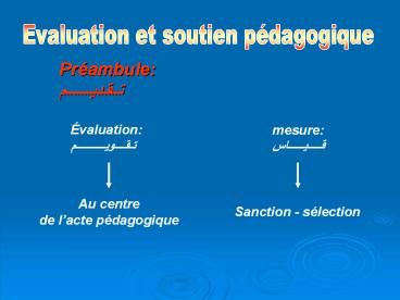 Evaluation et soutien pédagogique