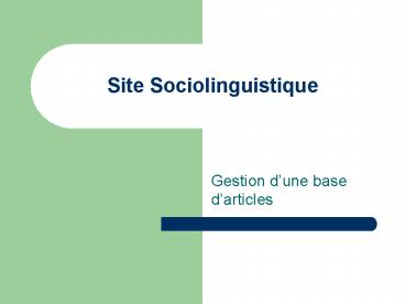 Site Sociolinguistique PowerPoint PPT Presentation