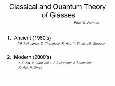 - T.R. Kirkpatrick, D. Thirumalai, R. Hall, Y.