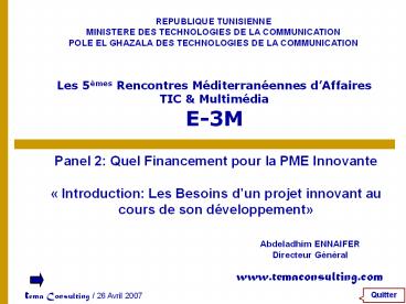 Panel 2: Quel Financement pour la PME Innovante PowerPoint PPT Presentation
