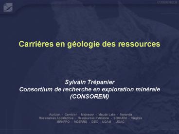 supervision de Michel Gauthier - Étude de la métallogénie dun gisement de