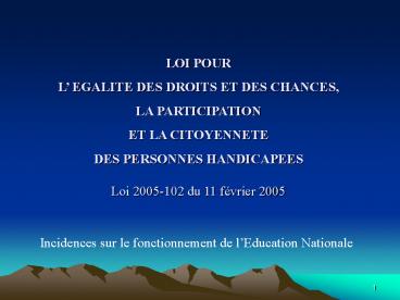 1LOI POUR L EGALITE DES DROITS ET DES CHANCES,