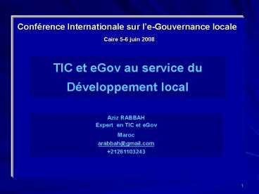 Title: TIC et eGov au service du Dveloppement local