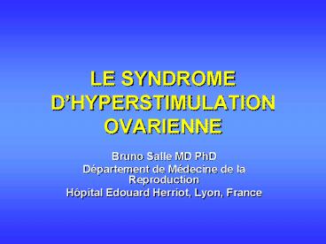 Title: LE SYNDROME DHYPERSTIMULATION OVARIENNE