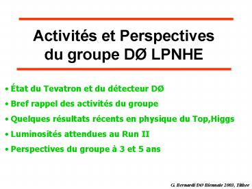 Le groupe du LPNHE a rejoint lexpérience D0 le