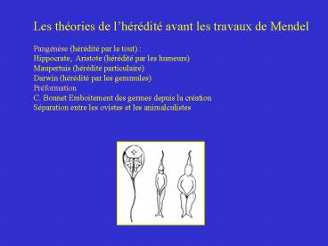 1Les théories de lhérédité avant les travaux de