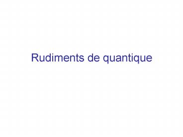 Title: Rudiments de quantique