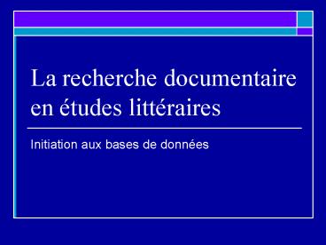La recherche documentaire en tudes littraires PowerPoint PPT Presentation