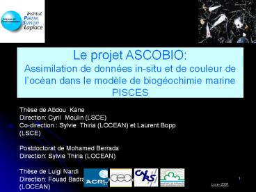 1Le projet ASCOBIO Assimilation de données