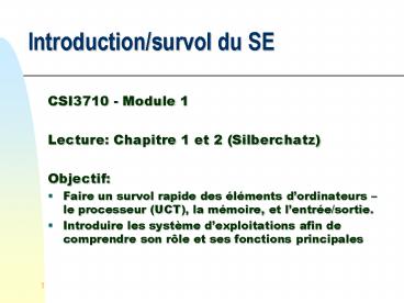 lentrée/sortie. - Introduire les système dexploitations afin de