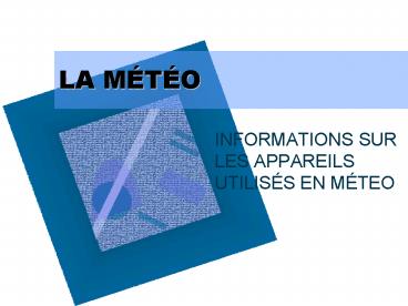 • INFORMATIONS SUR LES APPAREILS UTILISÉS EN MÉTEO