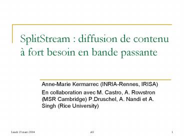 Title: SplitStream : diffusion de contenu