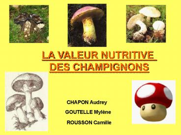 Title: LA VALEUR NUTRITIVE DES CHAMPIGNONS