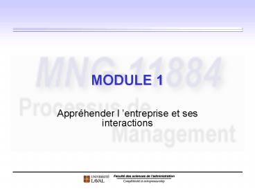 • Appréhender l entreprise et ses interactions