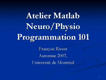 Atelier Matlab NeuroPhysio Programmation 101 PowerPoint PPT Presentation