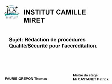 INSTITUT CAMILLE MIRET PowerPoint PPT Presentation
