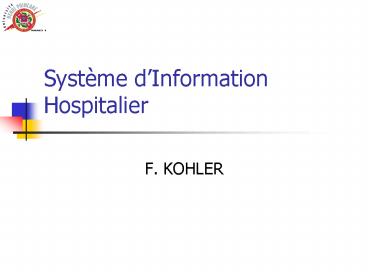l'ensemble des personnels concernés. - Un SIH ne peut fonctionner si chacun des acteurs