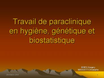 Travail de paraclinique en hygi PowerPoint PPT Presentation