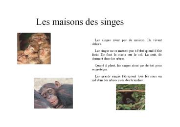 nuit, ils dorment dans les arbres. - Quand il pleut, les singes n'ont pas de toit pour