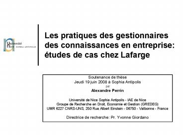 <Notice: Removed> Les pratiques des gestionnaires des connaissances en entreprise: PowerPoint PPT Presentation