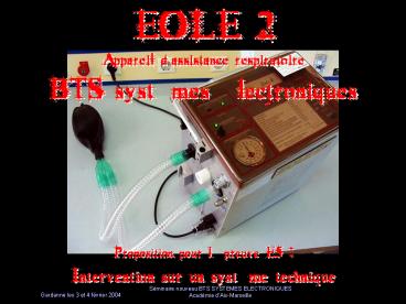 - Le travail sur lEOLE 2 nous permettra de mettre