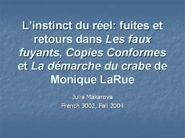 Linstinct du réel fuites et retours dans Les