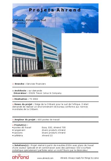 • Bases du projet Siège de la Citibank pour le