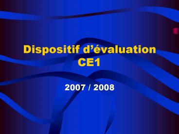 Dispositif dvaluation CE1 PowerPoint PPT Presentation